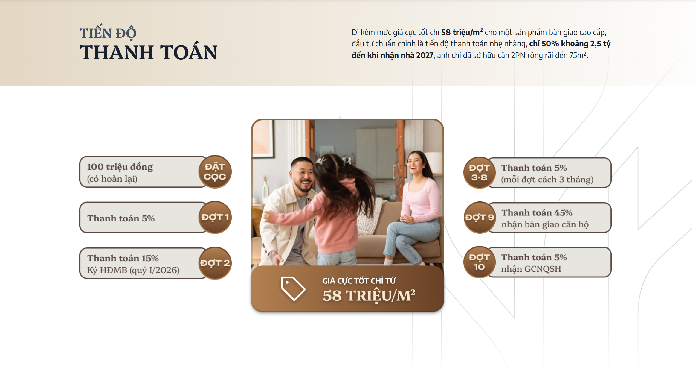 | 2 PN | ~75 m² | Ban công 12 m² – bếp “closed‑kitchen” tách khói; phù hợp gia đình trẻ |